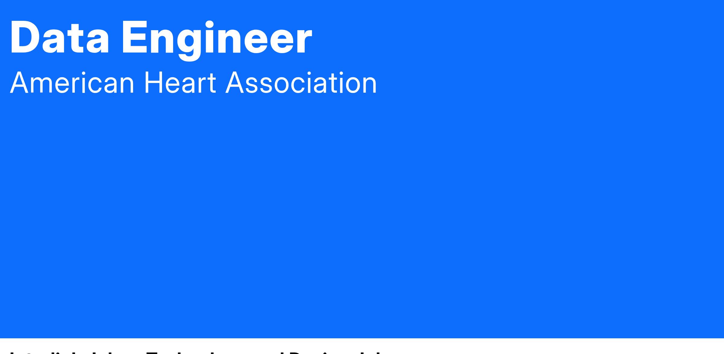 The American Heart Association has an excellent opportunity for a Data Engineer This position can be remote based within the U.S.