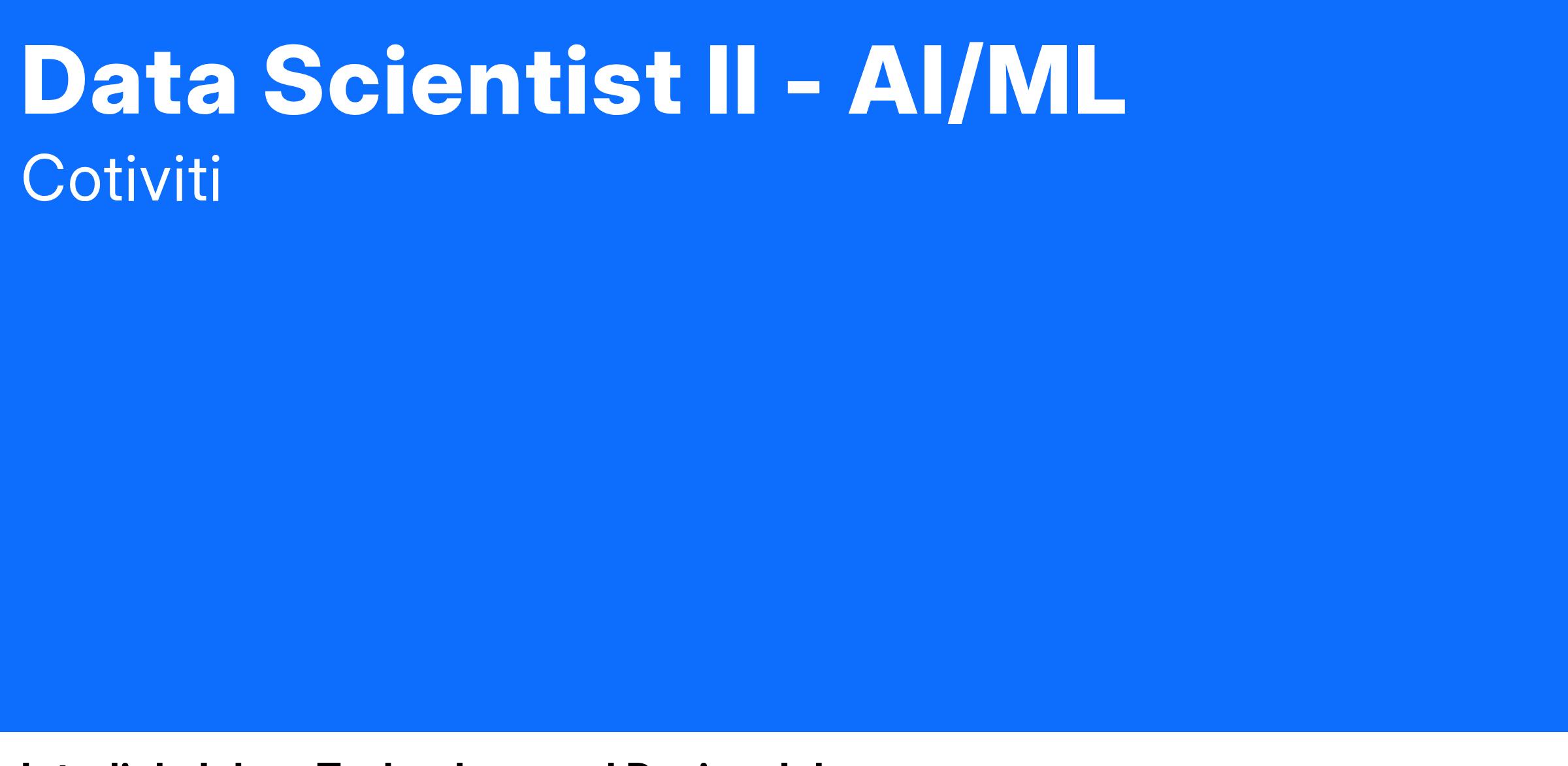 The Data Scientist II - AI/ML will apply knowledge and experience to real world problems and seek to utilize their skills reduce the cost of healthcare and improve health quality and outcomes. With access to dedicated on premise and cloud based big data solutions, the team can work with a vast amount of structured and unstructured data including claims, membership, physician demographics, medical records and others to begin to solve some of the most pressing healthcare issues of our time. A Data Scientist at Cotiviti will be given the opportunity to work directly with a team of healthcare professionals including analysts, clinicians, coding specialists, auditors and innovators to set aggressive goals and execute on them with the team. This is for an ambitious technologist, with the flexibility and personal drive to succeed in a dynamic environment where they are judged based on their direct impact to business outcomes.