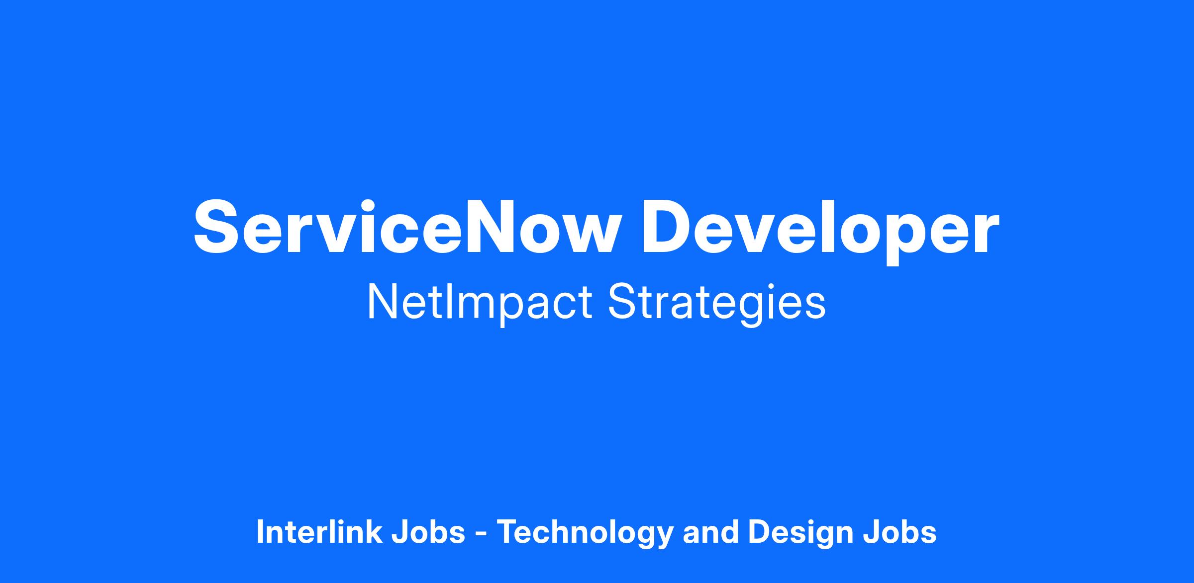 NetImpact Strategies is seeking a ServiceNow Senior Developer to join our talented IT Services team. This is a 100% remote position. The successful candidate will have fluency in ServiceNow development principles that enables them to work with developers and key stakeholders to develop enterprise business solutions for our customers that leverage ITIL processes and best practices. The successful candidate will be part of a team responsible for the maintenance and enhancement of the ServiceNow platform and must act with a sense of urgency and adapt to changing priorities. This position requires a full-time commitment.